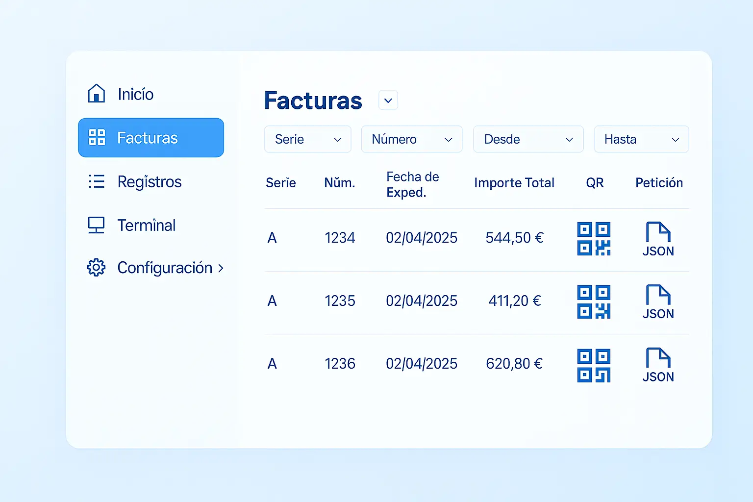 - Cada factura se firma digitalmente y se asocia a un registro único e inmutable.